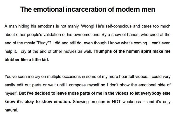 The emotional incarceration of modern men