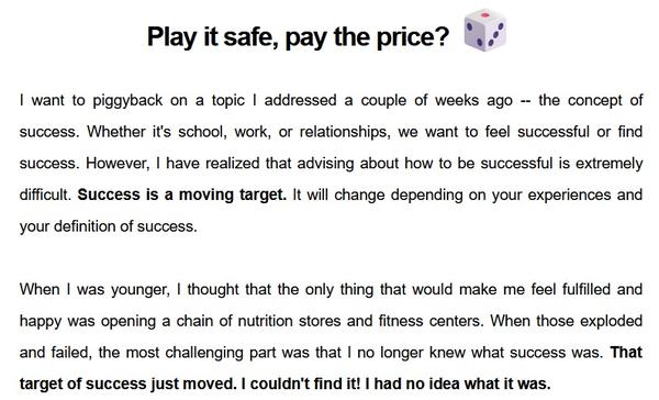 Play it safe, pay the success price? 🎲